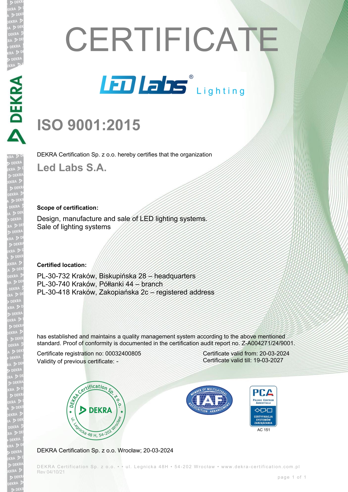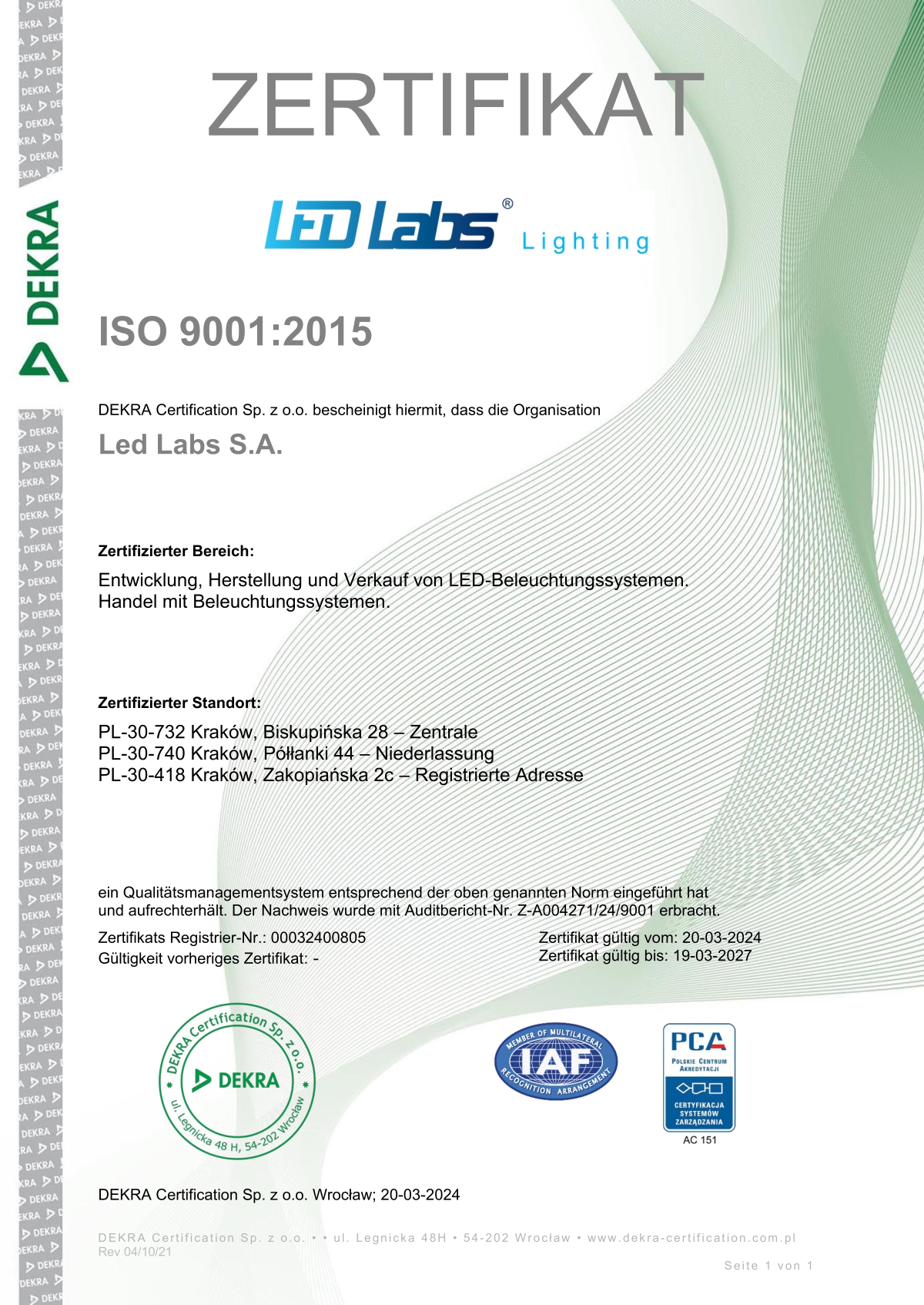 Wir danken Ihnen für Ihre Unterstützung und Ihr Vertrauen, die uns dazu motivieren, uns kontinuierlich weiterzuentwickeln. Wir ermutigen Sie auch, Vorschläge und Feedback mit uns zu teilen, um die Qualität unserer Produkte kontinuierlich zu verbessern. Wir freuen uns auf eine weiterhin erfolgreiche Zusammenarbeit und hoffen, dass unsere ISO 9001 Zertifizierung ein zusätzliches Asset für die Wahl von LED Labs S.A. sein wird.