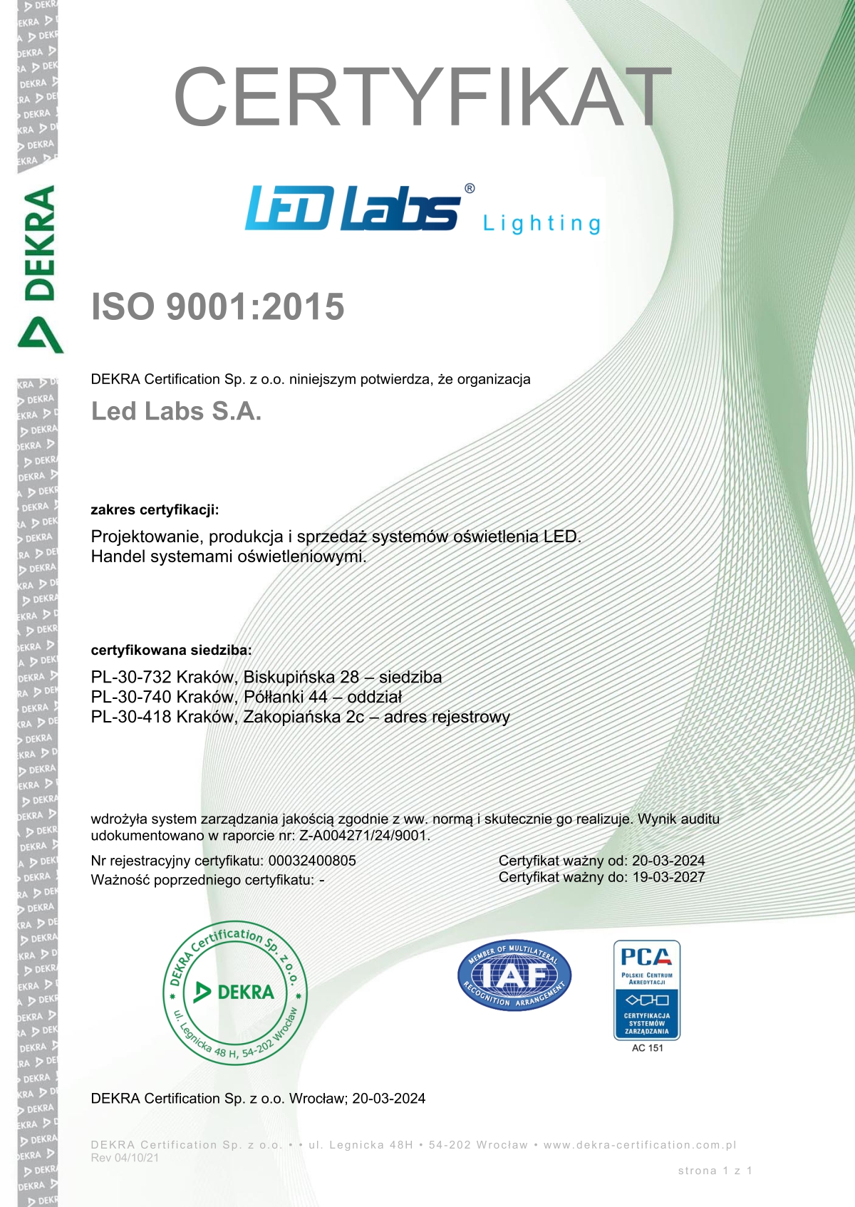Wir freuen uns, bekannt zu geben, dass LED Labs S.A. die ISO 9001 Zertifizierung erhalten hat, was unsere Verpflichtung zur Verbesserung der Qualität unserer Produkte und Dienstleistungen bestätigt.